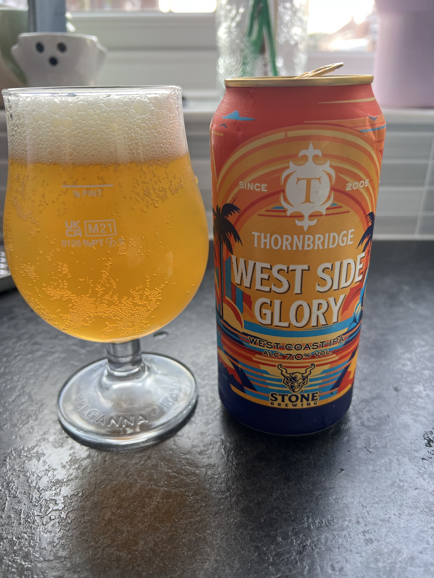 There’s something about a good West Coast IPA that just hits differently. That sharp, piney bitterness and citrus zest make it the perfect choice for those who like their beers bold, clean, and unapologetically hop-forward. So, when I spotted Thornbridge x Stone’s West Side Glory on the shelf, I had to give it a go. A collaboration between two heavyweights in the brewing world? Count me in.