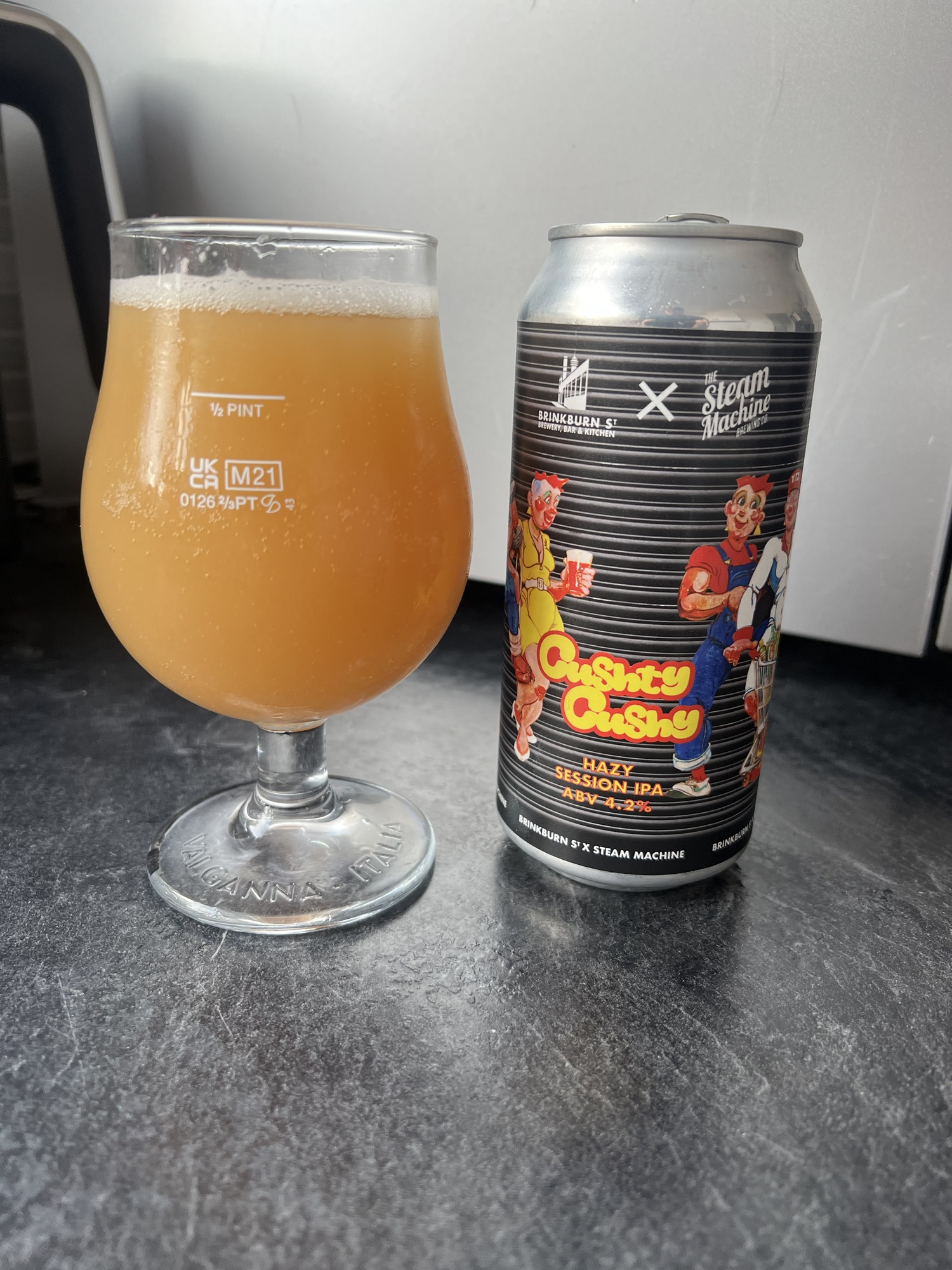 This beer review is on Cushty Cushty which is a hazy session IPA. This is an interesting because it is my first beer from both Brinkburn St Brewery and Steam Machine. This appealing beer was a purchase made at the same time as my Wor flags pale ale purchase. This beer originates from the North East and I am from the North East so it’s only necessary to give it a try. During course of this review, I will cover the history of both breweries, the pour, the taste and aroma and finally my opinion on this collaboration. Cheers