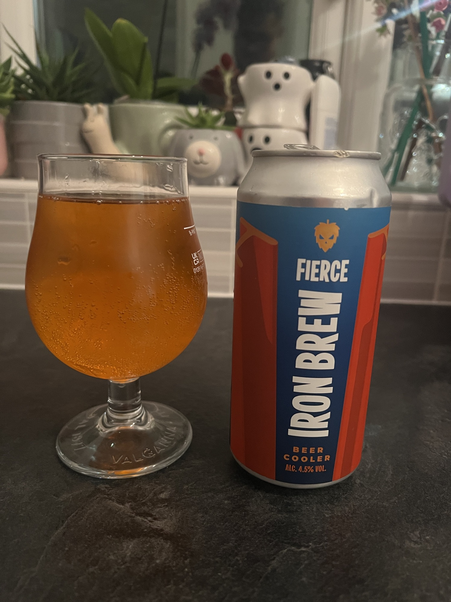 In 2024, the brewery added their beer cooler range which are lighter, flavour filled beers appealing to both craft beer drinkers and those who just enjoy a refreshing drink. One of their flavours was Iron Brew which is meant to imitate Scotlands fizzy pop called Irn Bru. This is meant to resemble Irn Bru but be alcoholic. Seems to be a similar idea as the alcopops (VK and WKD) but with added barley and hops. Iron Brew was launched in January 2025 in Fierce venues and exclusively to Scotmid stores. In February it was made more widely available.